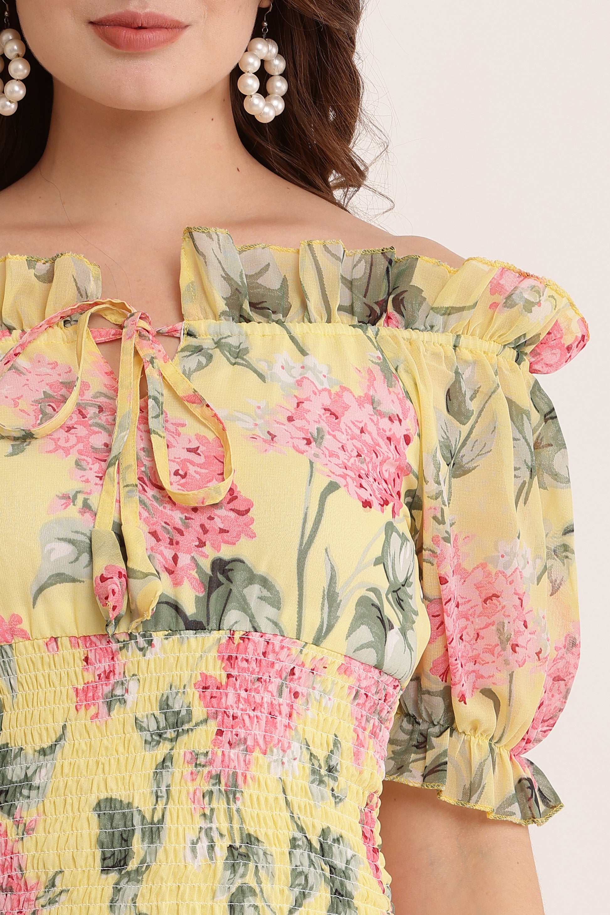 Elegant maxi dress featuring a romantic ruffle neckline.
